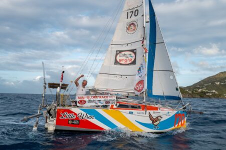 Adam, 62, crossed the finish line of the inaugural Mini Globe Race in Antigua on 9 April, more than 28,000 nautical miles after setting off on the adventure of a lifetime in his 19‑foot Class Globe 5.80 yacht Little Wren.